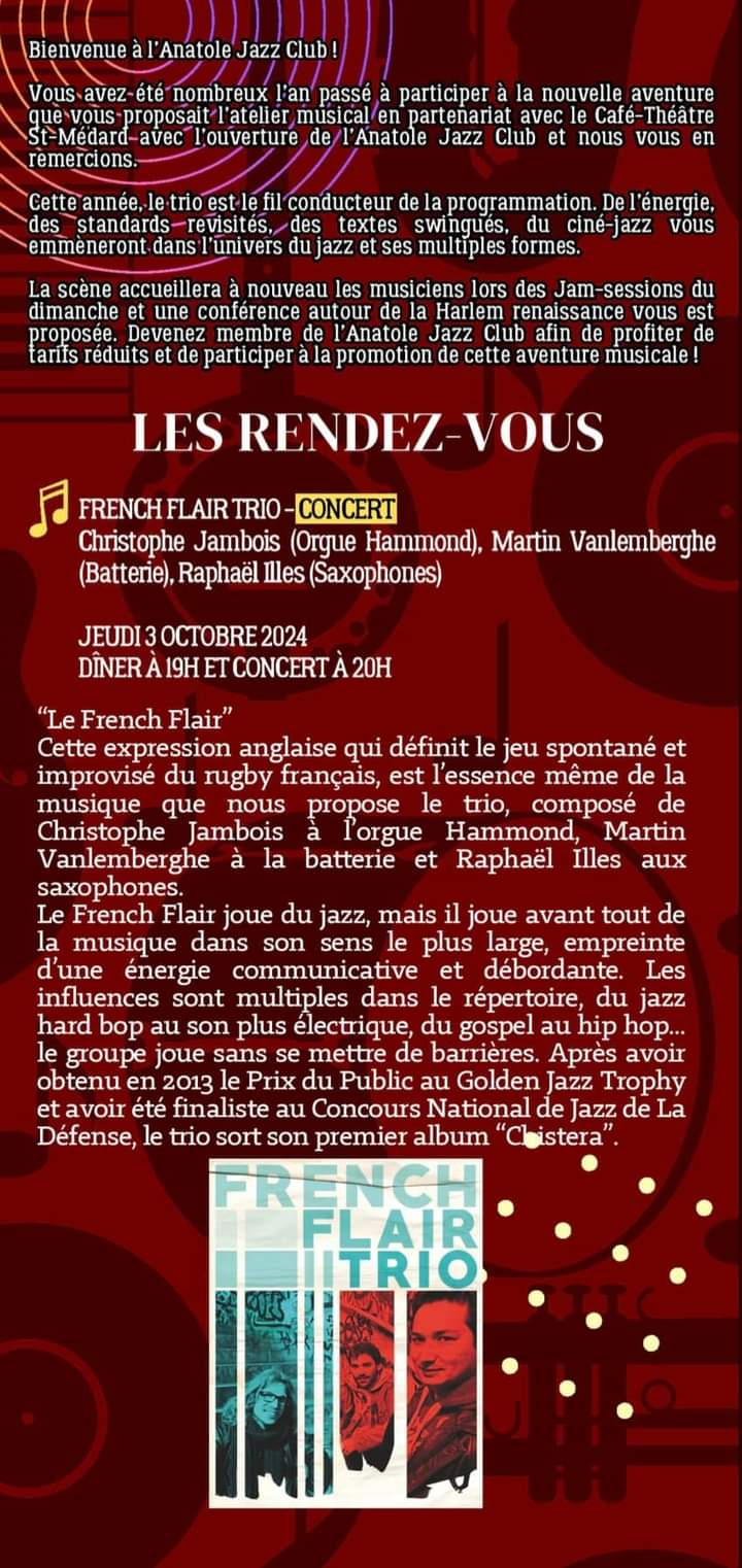 - Les concerts, jams et conférences ont lieu au Café Théâtre St Médard,